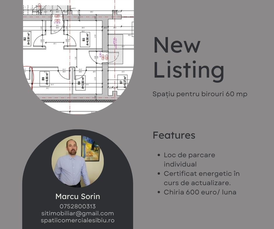 Spațiu pentru birouri 60 mp, în bloc nou str. Victoriei/ Arsenal.